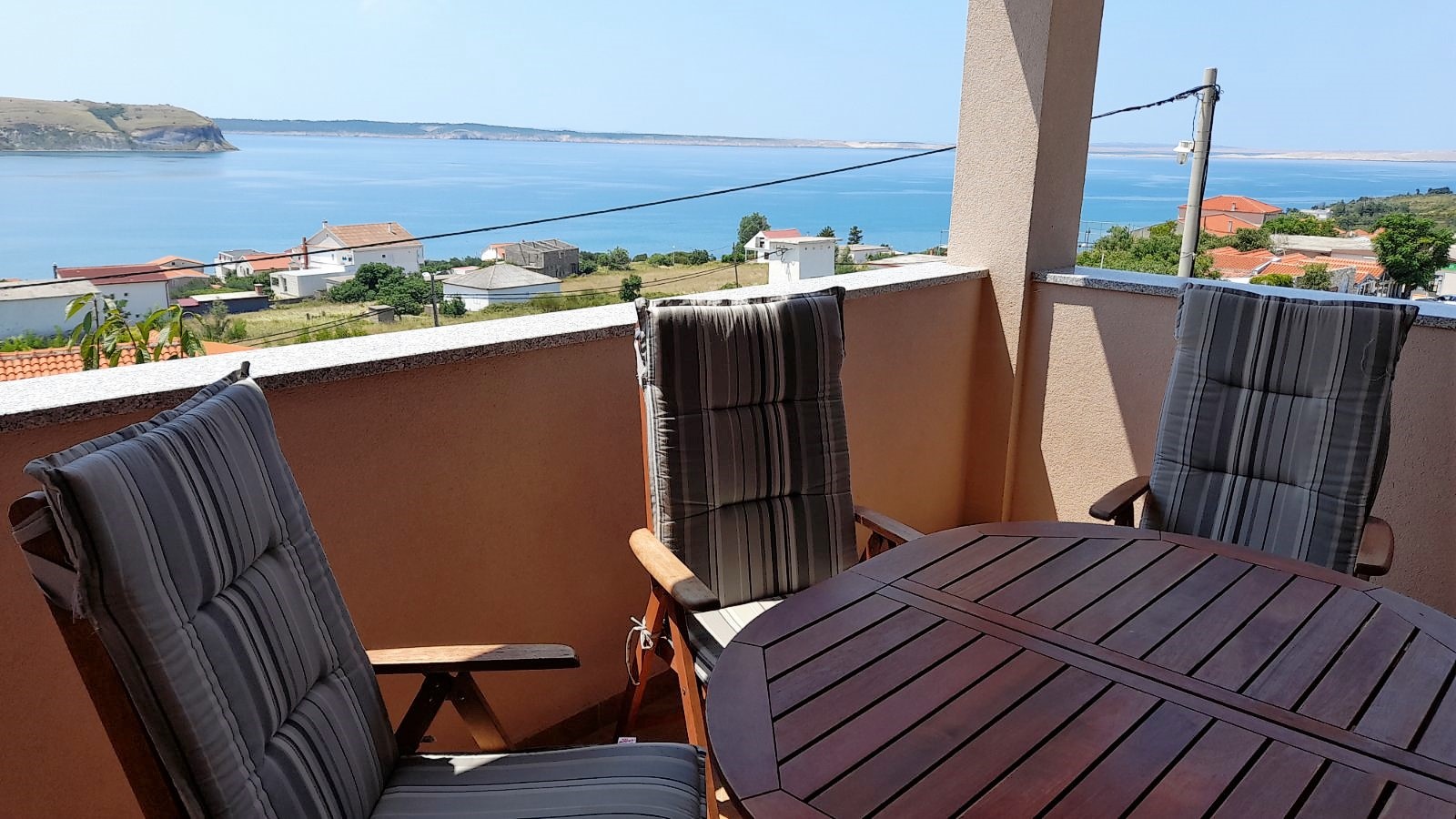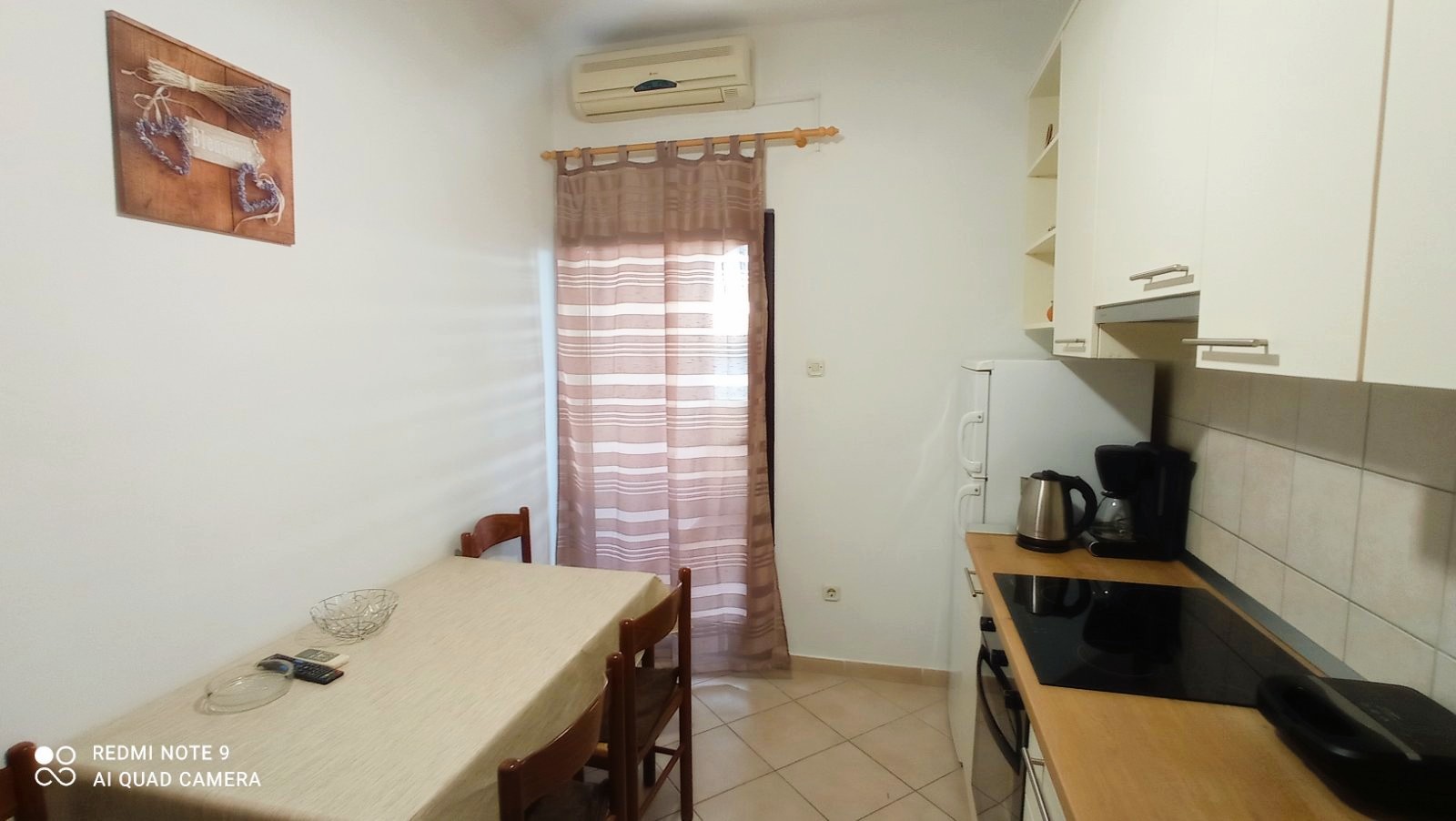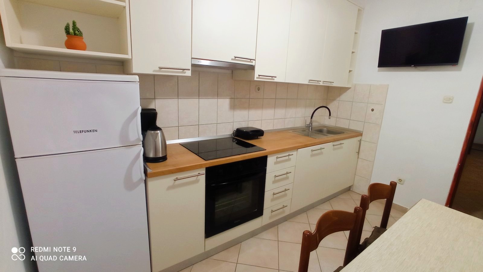 In der Nähe vom Strand im kleinen ruhigen Dorf Rtina Miocici, 4 km von Razanac, befindet sich dieses gemütliche Ferienappartament. Für 5 (4+1) Personen bietet sich hier eine optimale Möglichkeit, einen entspannten Familienurlaub zu genießen. Das Apartment in der ersten Etage hat eine Wohnfläche von 57 m² und ist in zwei Schlafzimmer, eine Küche mit Wohn-/Essraum und ein Bad aufgeteilt. Die Küche ist umfangreich ausgerüstet mit Küchenzeile, Esstisch, Herd mit Backofen, Kühlschrank mit Gefrierteil, Geschirrspüler, Kaffeemaschine, Wasserkocher. Im Essraum befindet sich ein Sat-TV-Gerät.