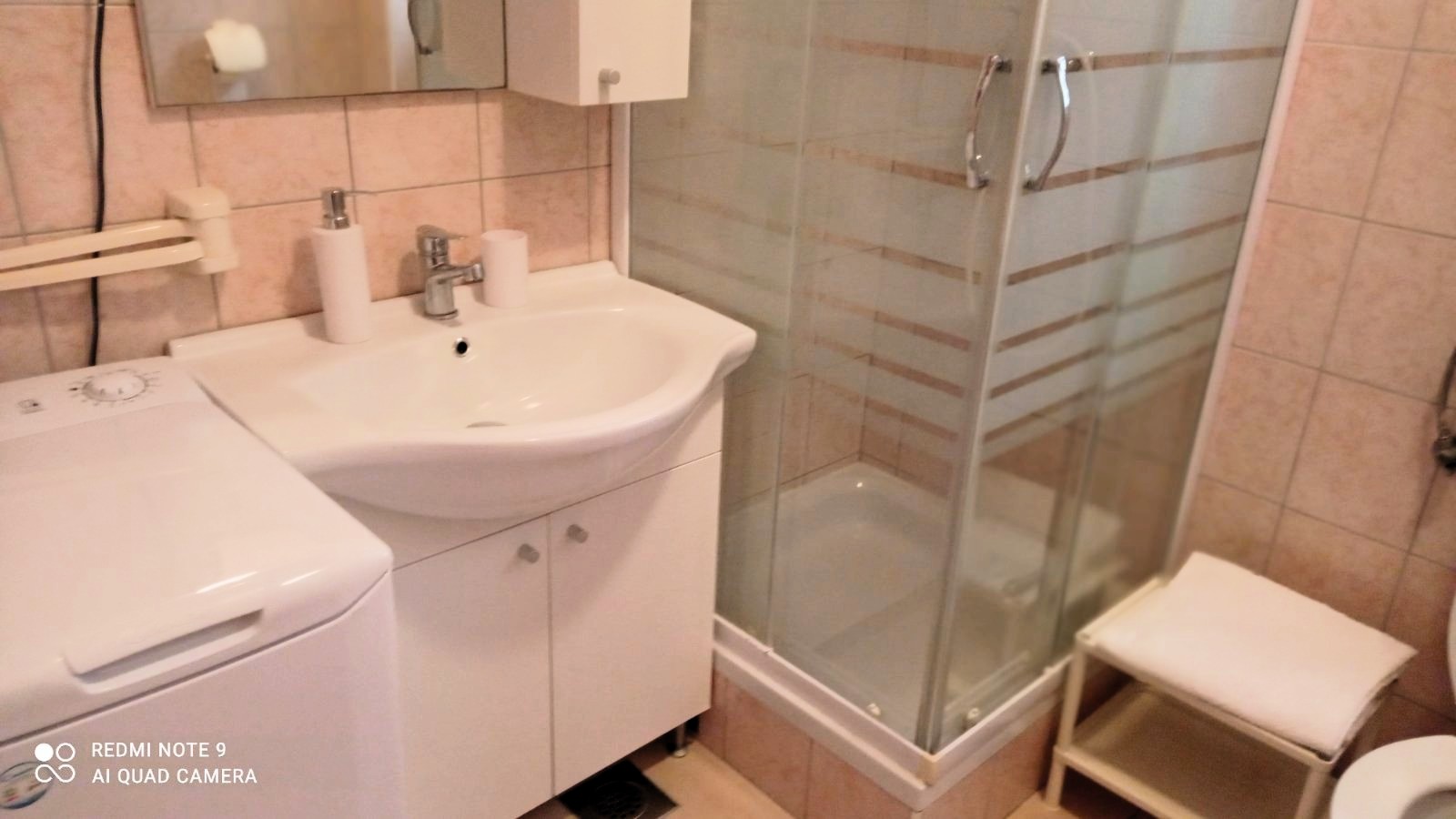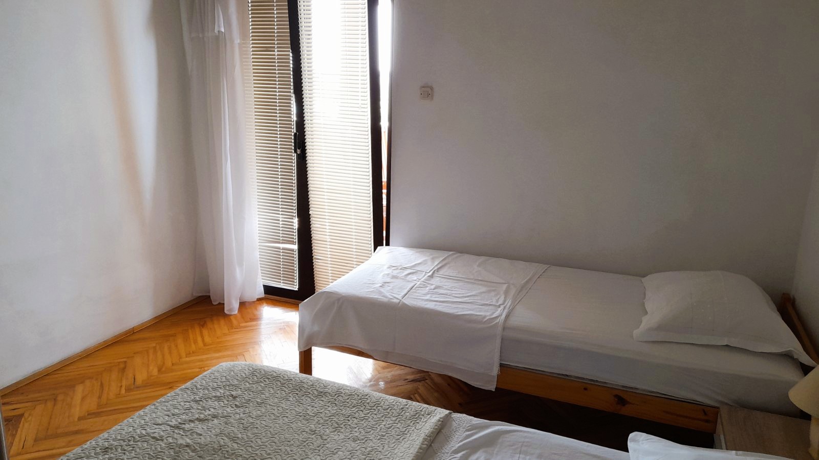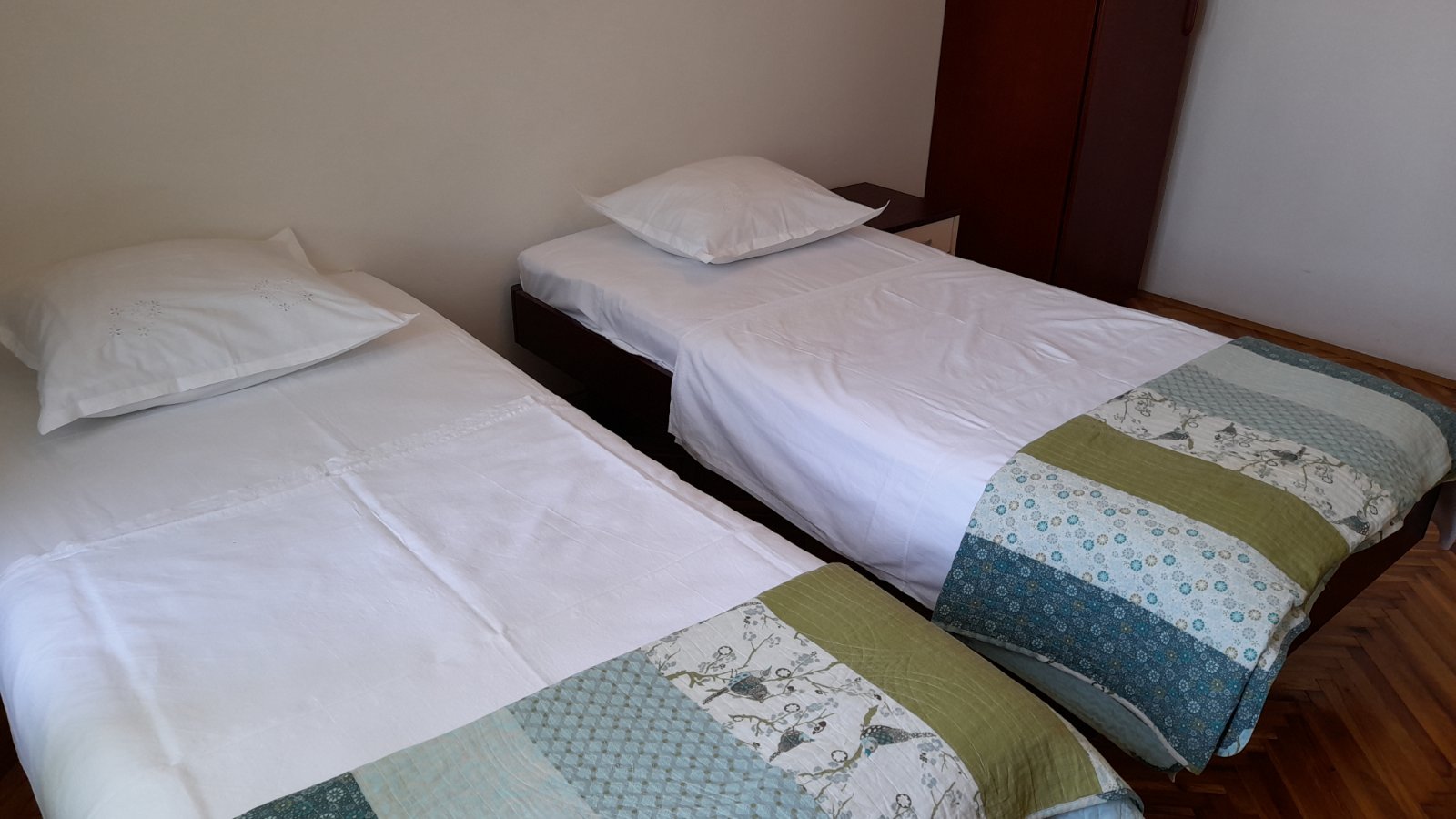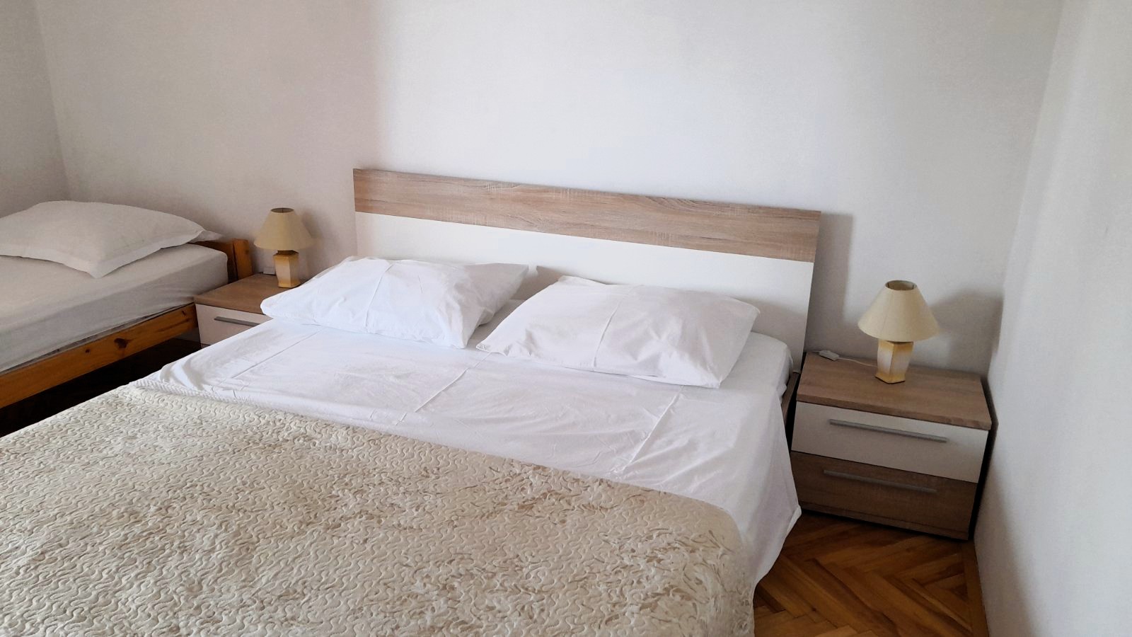 In der Nähe vom Strand im kleinen ruhigen Dorf Rtina Miocici, 4 km von Razanac, befindet sich dieses gemütliche Ferienappartament. Für 5 (4+1) Personen bietet sich hier eine optimale Möglichkeit, einen entspannten Familienurlaub zu genießen. Das Apartment in der ersten Etage hat eine Wohnfläche von 57 m² und ist in zwei Schlafzimmer, eine Küche mit Wohn-/Essraum und ein Bad aufgeteilt. Die Küche ist umfangreich ausgerüstet mit Küchenzeile, Esstisch, Herd mit Backofen, Kühlschrank mit Gefrierteil, Geschirrspüler, Kaffeemaschine, Wasserkocher. Im Essraum befindet sich ein Sat-TV-Gerät.