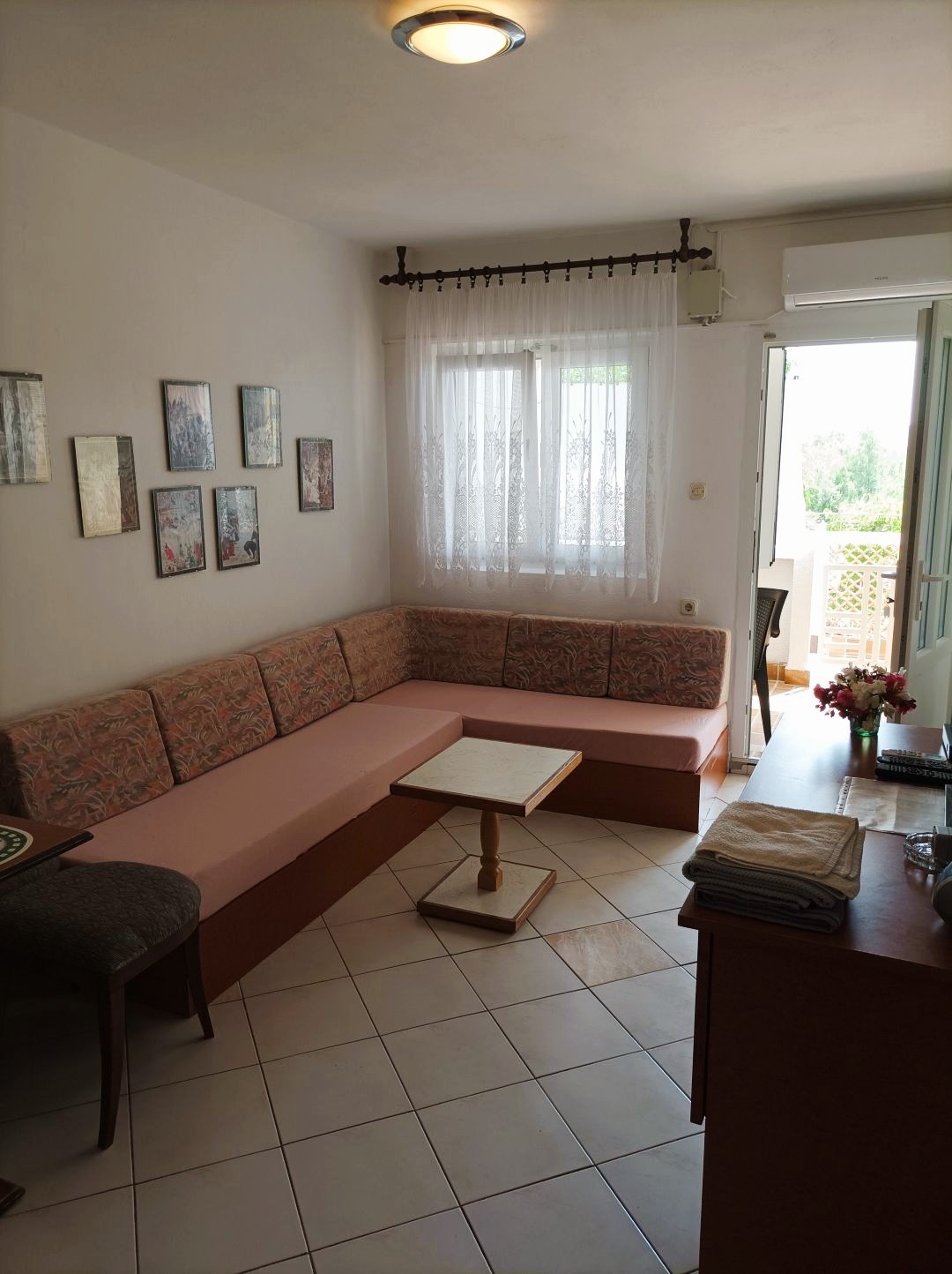 Dieses strandnahe Ferienhaus, nur ca. 200 Meter vom kinderfreundlichen Sandstrand entfernt, bietet 3 Ferienwohnungen für 4 (2+2) Personen, die man miteinander kombinieren kann. Optimales Objekt für drei Familien, die zusammen Urlaub machen möchten. Es bietet Platz für 12 Personen. Jedes Appartement mit ca. 30 m² verfügt über eine eigene Terrasse (7 m²), ein Doppelzimmer, eine Küche und ein Bad. Zwei Appartements liegen im ersten Stock und eine im Erdgeschoss.